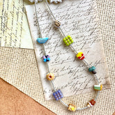 These are made by melting glass rods over a flame, shaping them into tiny sculptures—flowers, fruits, hearts, animals—you name it. Every bead is one-of-a-kind.