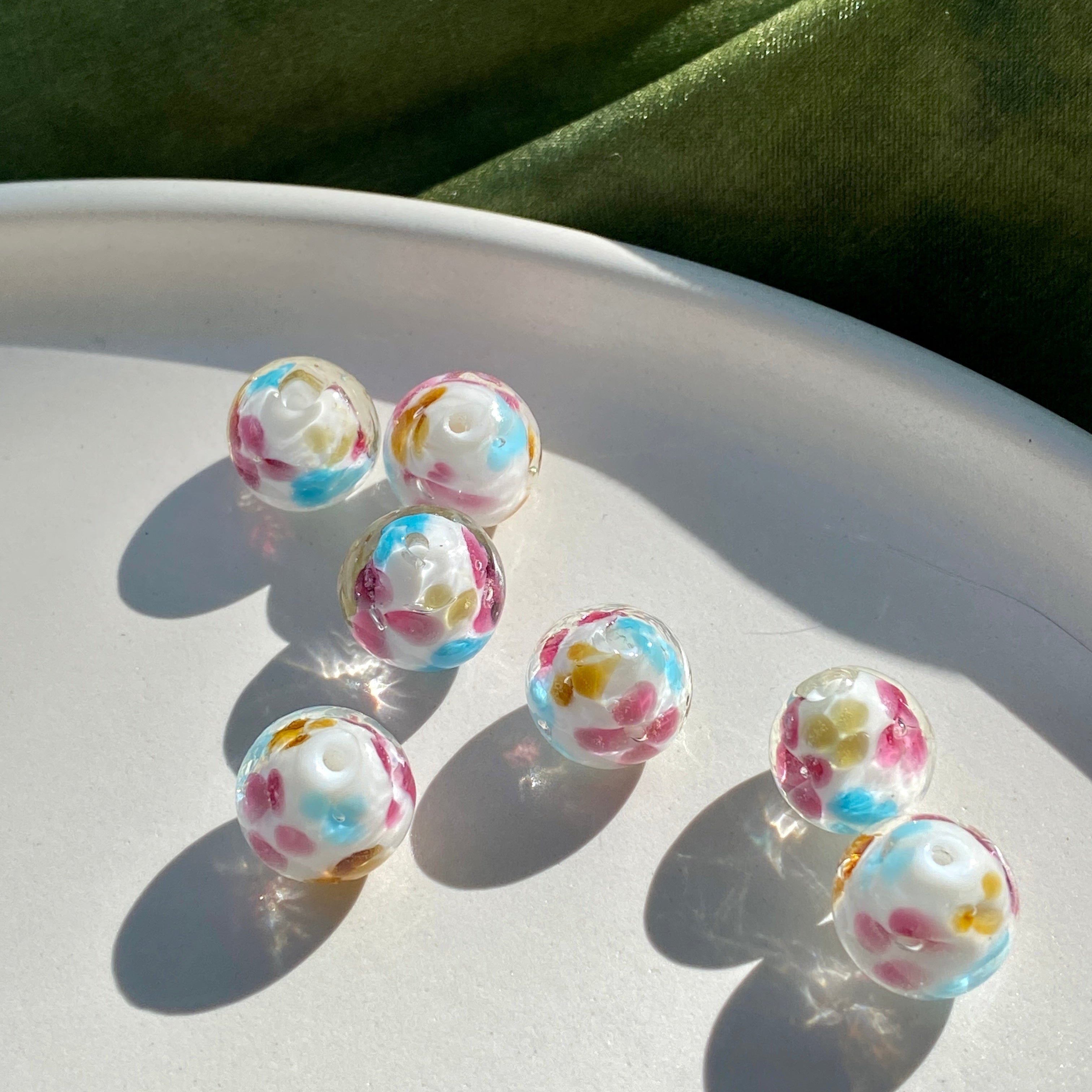 These 13mm floral bubble beads feature a delicate swirl of colors that mimic blooming flowers sealed in clear glass. Lightweight yet vibrant, they add a playful yet elegant touch to your handmade bracelets, earrings, and necklaces.